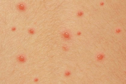 White skin with stage 2 chickenpox spots.