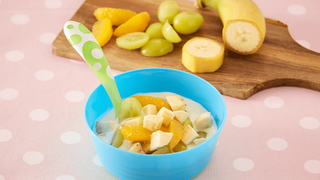 Have chopped and ready-to-eat fruit and veg, like apple, carrot, cucumber, celery, peppers, peeled satsuma segments, strawberries, halved grapes, tinned pineapple or melon slices pre-prepared for an easy snack kids can eat with their fingers.