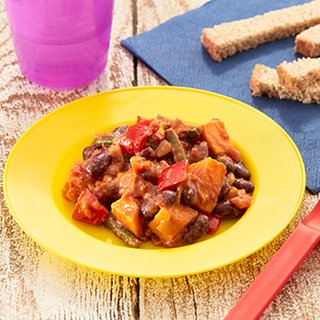 This recipe is full of interesting flavours for your baby to explore – and makes a great family meal too. It includes a variety of vegetables, chilli powder and peanut butter.