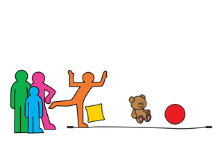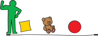 3. Next, pick up the toy or cushion in front of you, and move it to the other side of the line – but do not let your feet leave the ground!