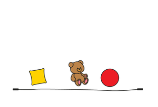 1. Make a long line on the floor with some string or paper. All along one side, place toys or cushions within grabbing distance from the line.​