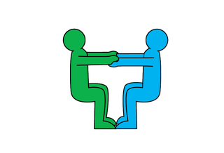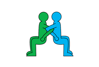 With your backs together, link arms. Sit down, stick your legs out, then stand up.
