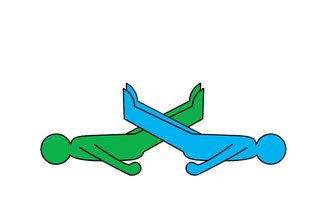 Lie on your backs opposite each other, so your toes are level with the other person's knees. Then circle your legs over theirs.