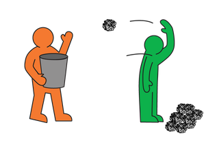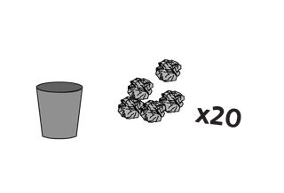 1. First you will need a basket or bin. Then grab an old newspaper to make your coconuts – make 20 balls, or you can use rolled-up socks instead.