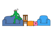 Create a circular obstacle course with cushions, sofas and chairs. Make sure everything you use is steady and you're on soft flooring.