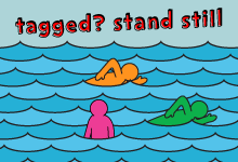 4. When one of you is tagged, they stand still in the pool and can be released when someone tags them.