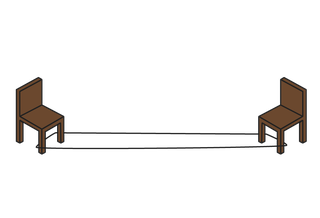 1. First you need to create the reins – make sure you have plenty of space. Get a skipping rope or a long piece of string and loop it around the legs of 2 chairs to form a square. If you don't have any chairs handy, ask 2 friends to loop it around their legs.