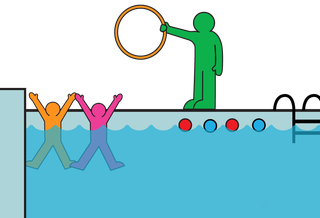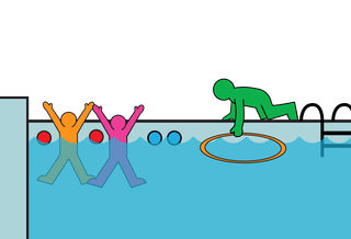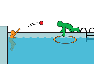 You'll need to play this game in a swimming pool, in pairs. Remember, children playing in water should be supervised by an adult at all times. You'll need a hoop (or to make one from a pool noodle), and some floating balls or toys.